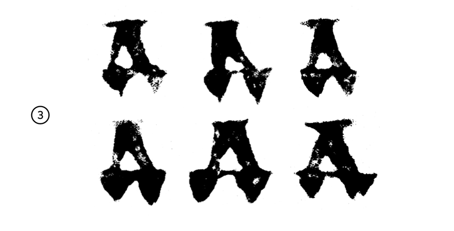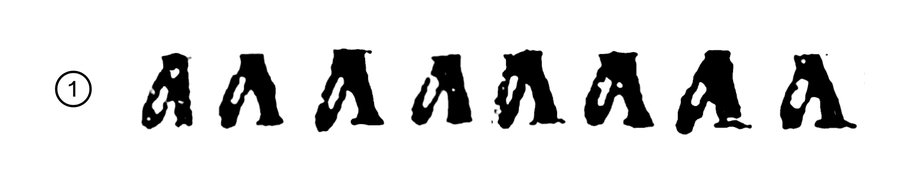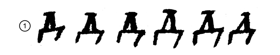В уставных почерках буквы АЛД стремятся к согласованности: - по углу, под которым сходятся дополнительный и основной штрих - по форме апекса (места соединения штрихов): наличие или отсутствие засечки, острая или прямоугольная форма, высота над строкой - по форме внутрибуквенного белого в А и Д - по пропорциям: А и Л имеют одну ширину почти во всех рассматриваемых почерках; Д — самый широкий знак из-за горизонтали с выносными элементами