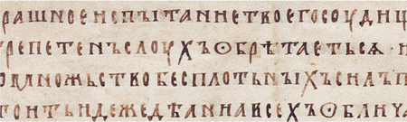 1. Супрасльская рукопись, XI, Q. п. I. 72 2. Остромирово Евангелие, 1056–1057, F.п. I.5 3. Ирмологий нотированный, нач. XIII, РНБ ОР Q.п.I.75 4. Фроловская Псалтирь, перв. пол. XIV, РНБ ОР F.п.I