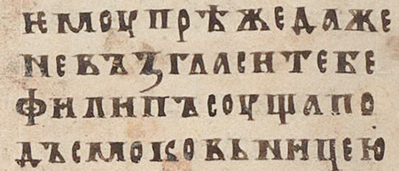 Псалтырь с восследованием, XII, Q.п.I.37. Форма с клиновидной засечкой в месте соединения штрихов