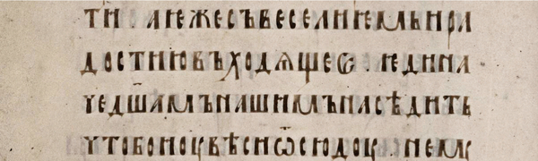 Фроловская Псалтирь, перв. пол. XIV, ОР F.п.I.2. Острая узкая форма с практическими вертикальными основным штрихом