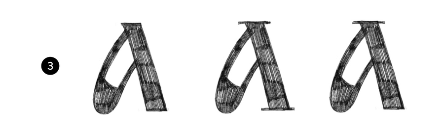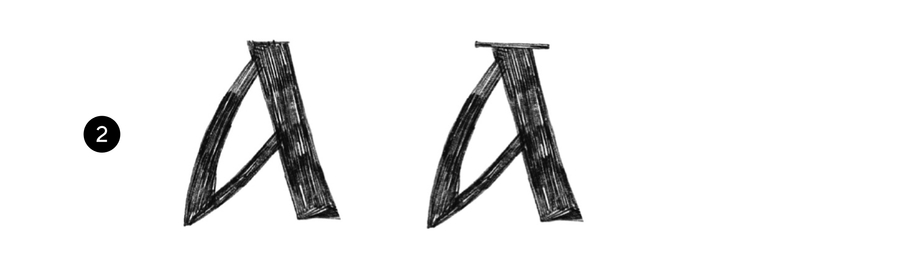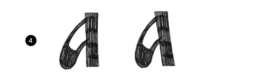 Форма практически без контраста между прямым основным штрихом и дополнительным