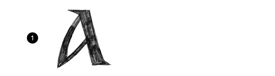 Динамичная форма с маленьким внутрибуквенным белым и выносом основного штриха. Выносные элементы слегка наклонены влево и стремятся быть параллельными