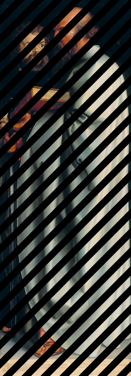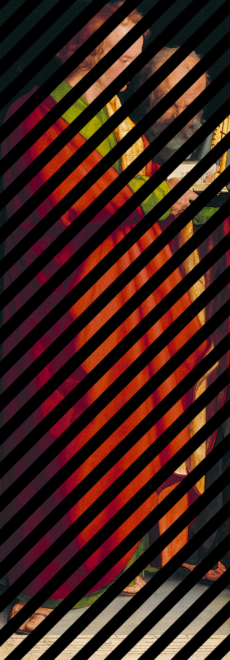 В 1526 году прославленный нюрнбергский мастер Альбрехт Дюрер, известный по обе стороны Альп своими работами и более всего широко расходившимися гравюрными оттисками, напишет большую и необычную картину — парную, состоящую из двух отдельных, но композиционно крепко спаянных частей. За ней закрепилось название «Четыре апостола», хотя одна из фигур справа, со свернутым свитком, представляет евангелиста Марка, не входившего в число апостолов. В профиль перед ним возвышается, держа тяжелый фолиант и меч, фигура Павла, величественная и строгая. Апостольская пара слева погружена в текст бережно раскрытого кодекса: на Петра и Иоанна Евангелиста указывают их атрибуты — ключ и книга. Сильно вытянутый формат с отношением высоты к ширине почти 3:1, традиционное дерево в качестве материала основы и особенно фланкирующая постановка передних, обозреваемых полностью фигур (в повороте не столько друг к другу, сколько к некоему подразумеваемому центру) — все это делает картину похожей на закрытые створки высокого алтаря (фигуры немного превышают человеческий рост). К таким монументальным заалтарным комплексам с середины XIV века шло развитие изобразительных программ интерьерных культовых сооружений в исполнении скульпторов или живописцев.