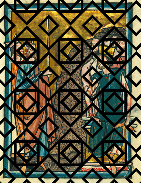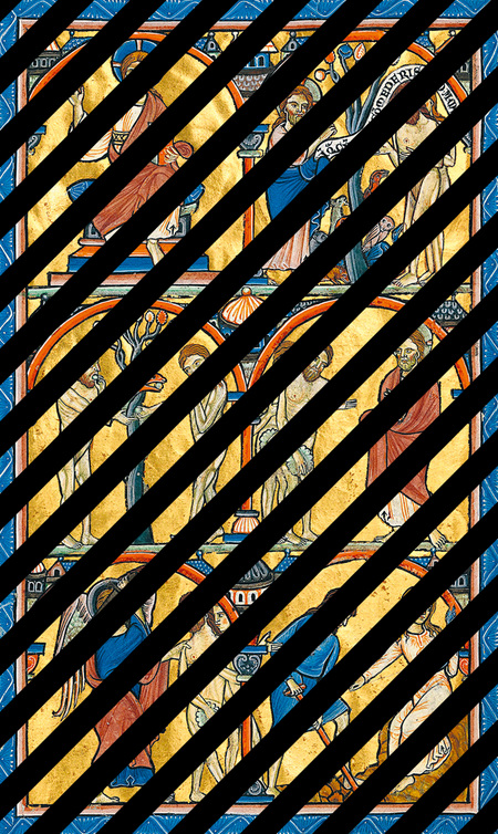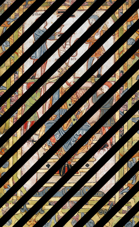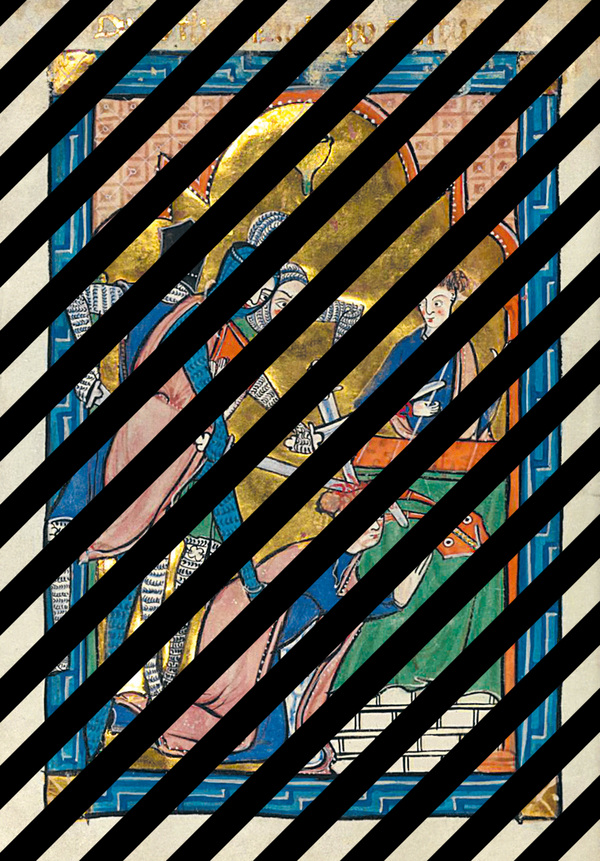 Слева: Страдания святого Фомы Кентерберийского (Томаса Бекета). Псалтирь из Кэрроу. Ок. 1250. Пергамен. Справа: Царь Давид на троне. Псалтирь Тиберия (Винчестер [?]). Третья четверть XI в. Пергамен