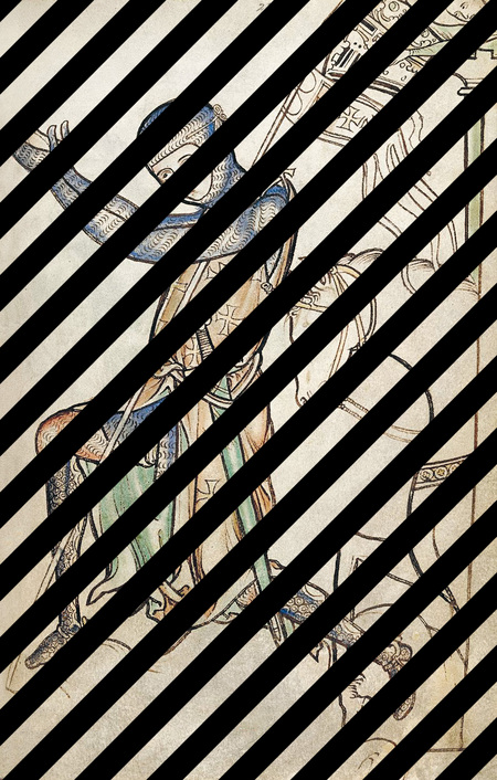 Слева: Святой Христофор, несущий Младенца Христа. Справа: Коленопреклоненный рыцарь и его конь перед отправлением в крестовый поход. Вестминстерская псалтирь. Ок. 1250. Пергамен