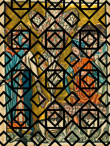Аарон и Моисей наблюдают за тем, как Кораха и его сообщников поражает небесный огонь. Мюнхенская псалтирь (Оксфорд). Первая четверть XIII в. Пергамен. Баварская государственная библиотека, Мюнхен