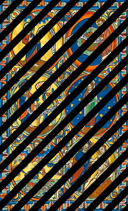 Сцены из жизни апостола Иоанна. Апокалипсис Тринити (Лондон/Солсбери). 1255–1260. Пергамен. Библиотека Тринити Колледжа, Кембридж