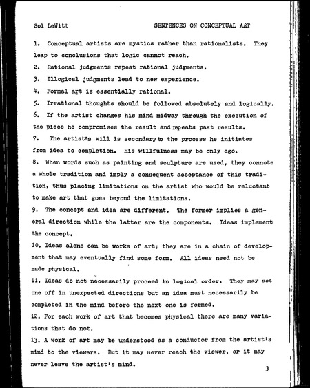 Сол Левитт «Параграфы о концептуальном искусстве», 0–9 ВЫПУСК № 5 (января 1969)