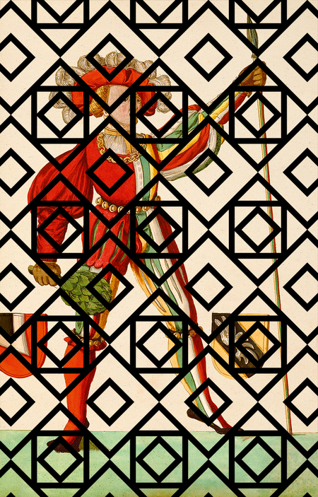 Карнавальный костюм Кубиков из игральных карт. Иллюстрация из манускрипта «Книга шембарта» («Книга нюрнбергского карнавала»). Ок. 1600