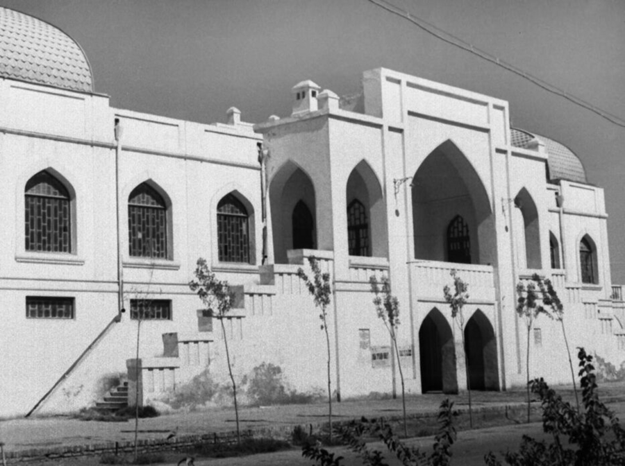 Почтовая карточка изд. Средне-Азиат. отд. Всесоюз. К-ва Печати № 858. 1925–1930 гг. (здесь хорошо видно, что у входа была небольшая площадь со скамейками, сейчас здание плотно прилегает к дороге)