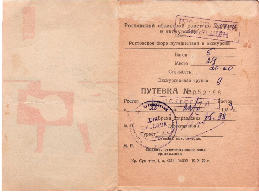 · внимание Неизвестен, «Экскурсионная путевка», 1973 г.