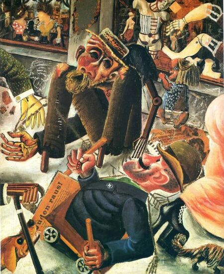 Отто Дикс, Генрих Херле и Георг Гросс создают образы пугающего нового послевоенного мира, населенного сломанными существами, часто больше напоминающими механизмы, чем людей.