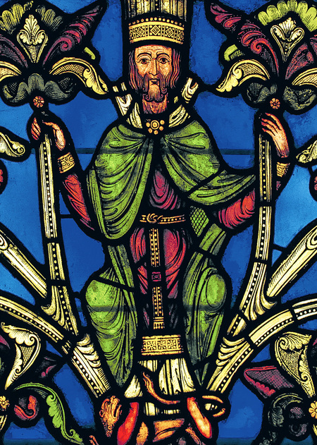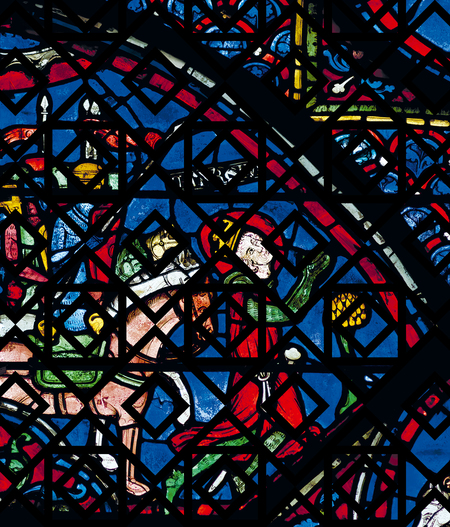 Юлиан Странноприимец с родителями. Витраж из Шартрского собора. 1210–1225. Стекло, свинец, стекольная краска
