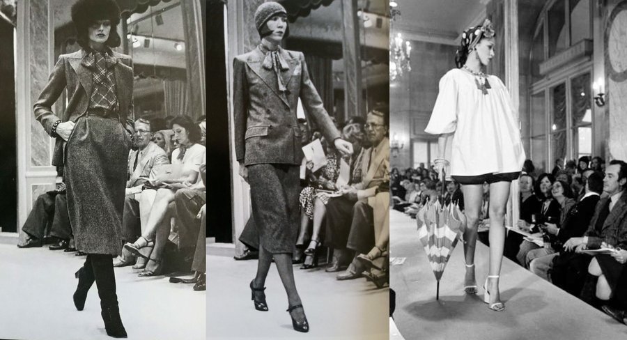YSL в: [1], [2], [3] и [4] Осень/зима 1975 [5] Показ 1975 г.
