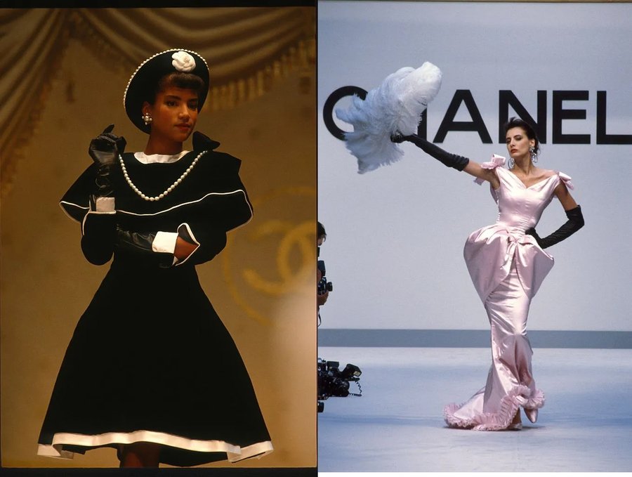 Chanel при Карл Лагерфельде в: [1], [2], [3] и [4] 1986; [5] и [6] 1987; [7] и [8] 1988; [9] и [10] 1988-1989; [11] и [12] 1989-1990.