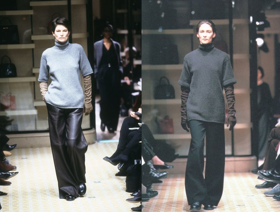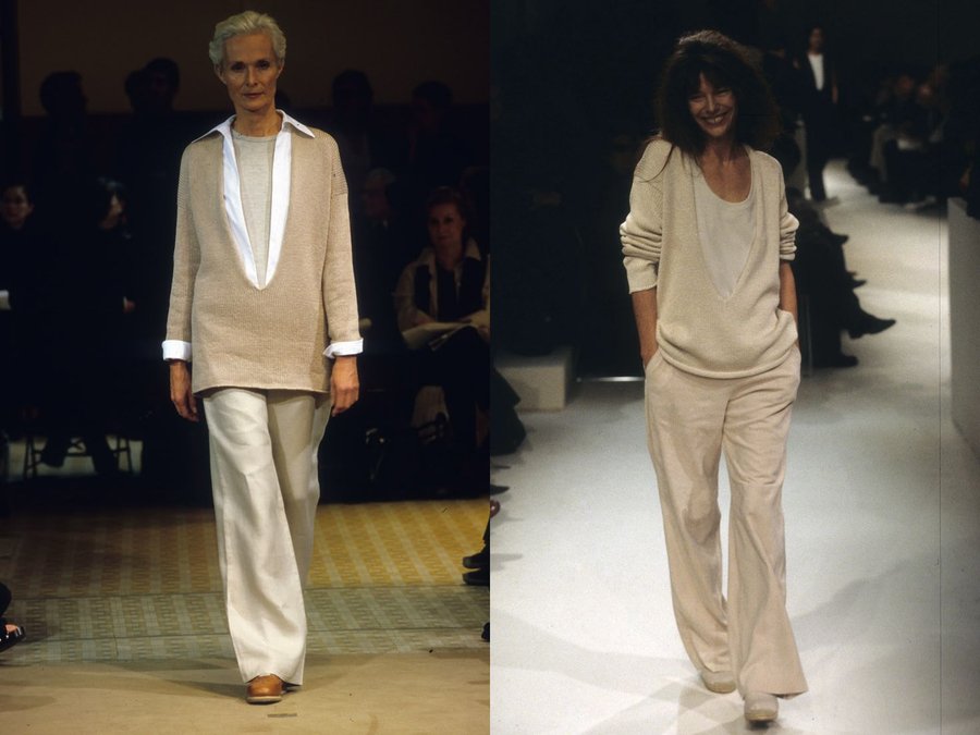 [1] Мартен Маржела для Hermes, осень/зима, 1998; [2] Мартен Маржела для Hermes, весна/лето, 1999, одной из моделей на показе была Джейн Биркин