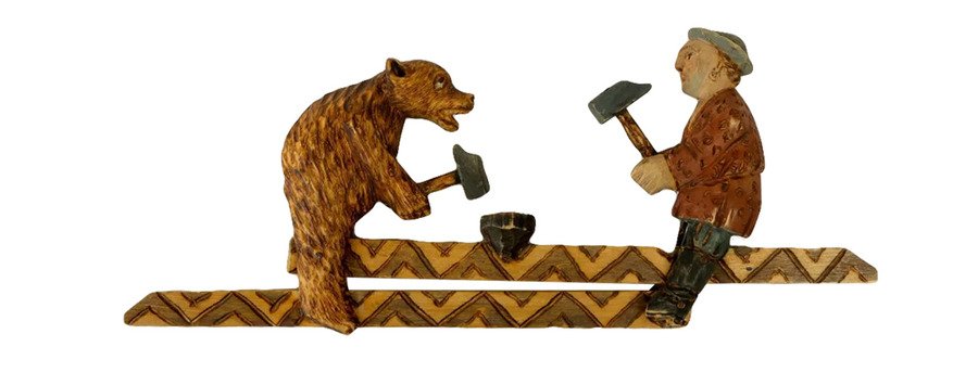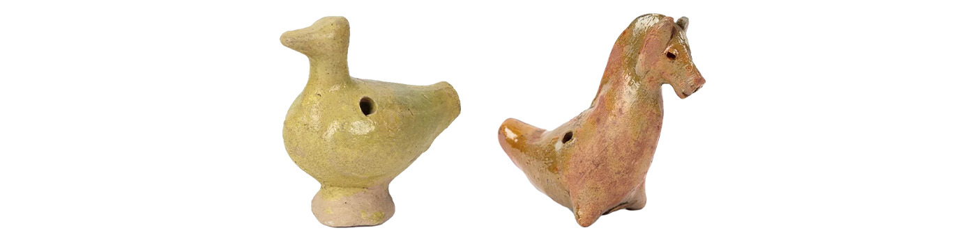 Игрушка «Кузнецы», 1890-е; Игрушка-свистулька «Птица», 1870-е; Игрушка-свистулька Конь», 1870-е
