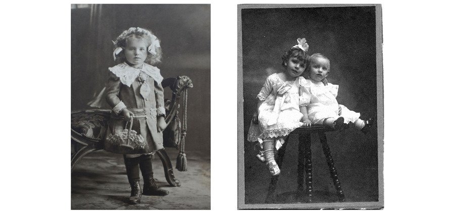 Портрет двух девочек, А.Поссе, 1880-е; «Покойной ночи», фотоателье Везенберг и ко, 1870-е; Портрет девочки с кошкой, Л.Перельман, 1890-е