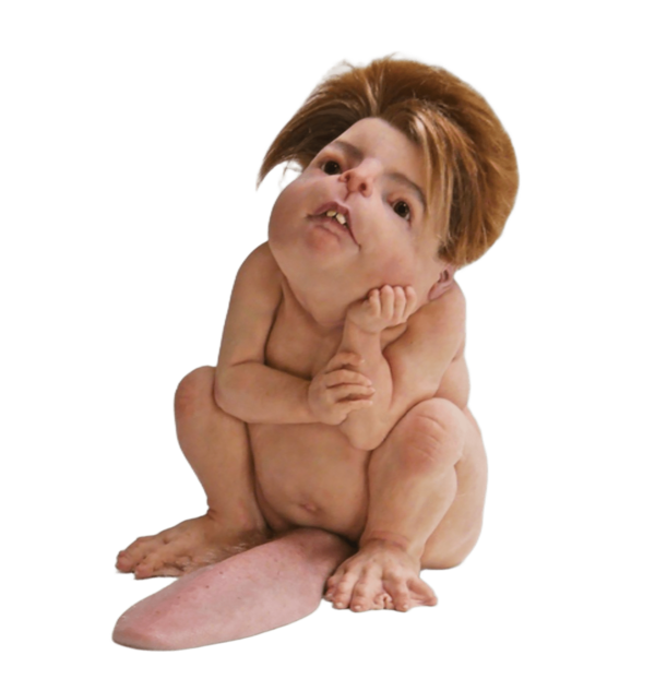 «Молодая семья» (The Young Family), 2002 г. Патриции Питчинини представляет гибридное существо, созданное биоинженерией, которое спокойно ухаживает за своими детёнышами, напоминая одновременно о человеческой нежности и технологическом вмешательстве в природу. Скульптура соединяет трогательную сцену материнства сотталкивающей телесностью, заставляя зрителя переживать смесь эмпатии и тревоги.