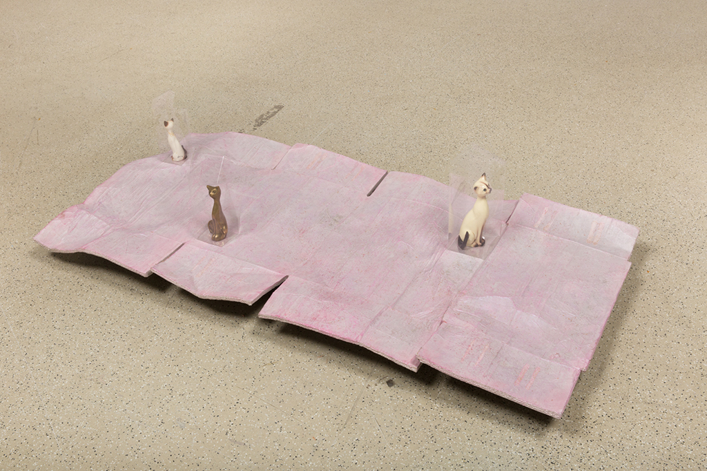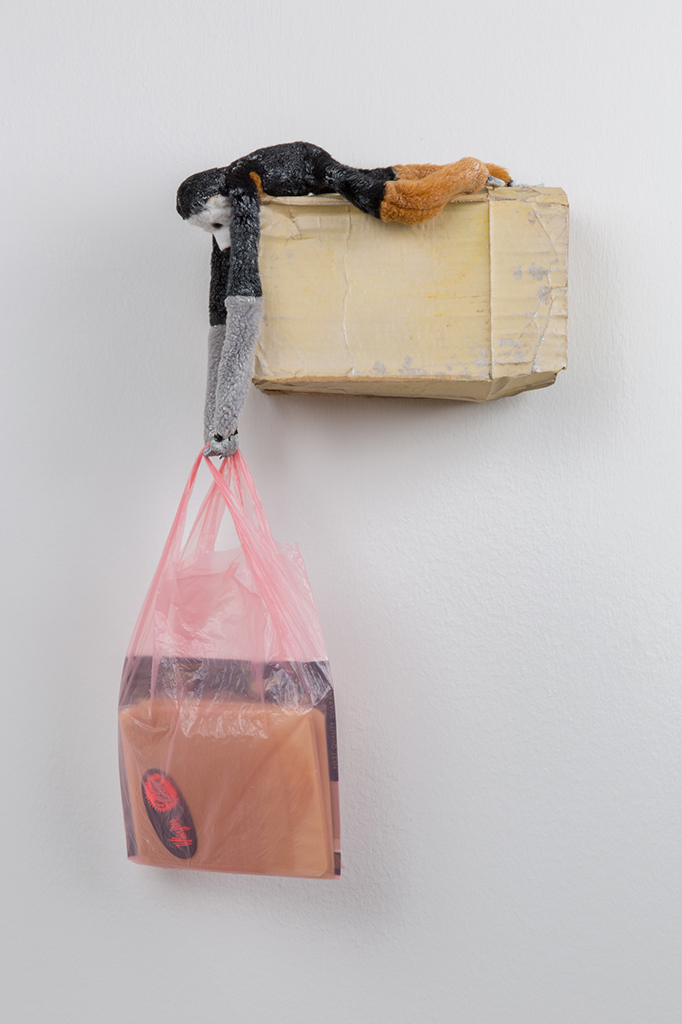 Художница использует образы животных как чувствительные маркеры гибридности, превращая их в объекты, которые одновременно напоминают живую плоть и выглядят как искусственные модели. Отливки птиц и мелких зверей она сочетает с упаковкой и бытовыми вещами, и это создаёт странное ощущение, что животное существует внутри мира потребления как ещё один предмет.