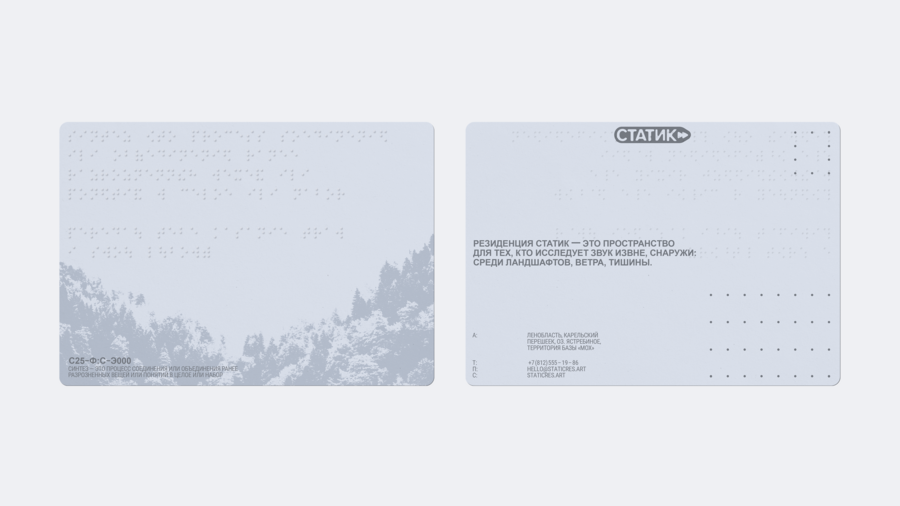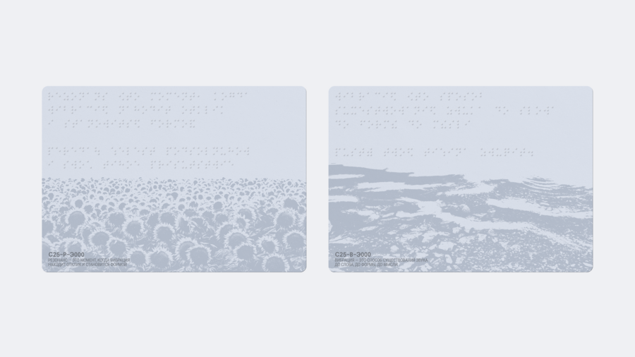 Поскольку резиденция работает с незрячими людьми, на тактильных носителях используется азбука Брайля.