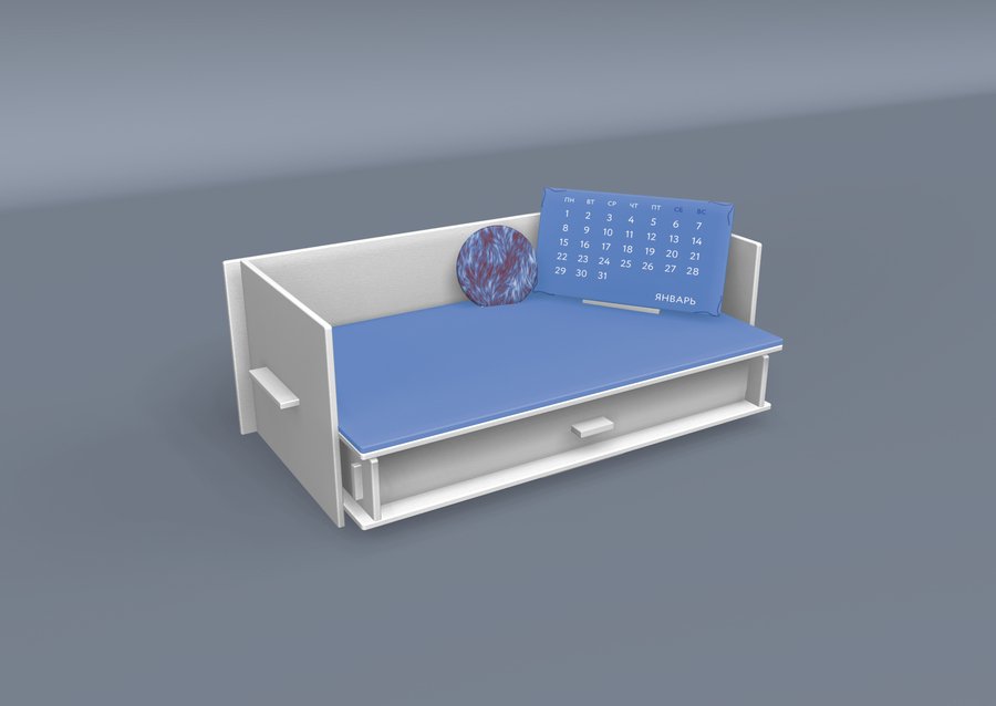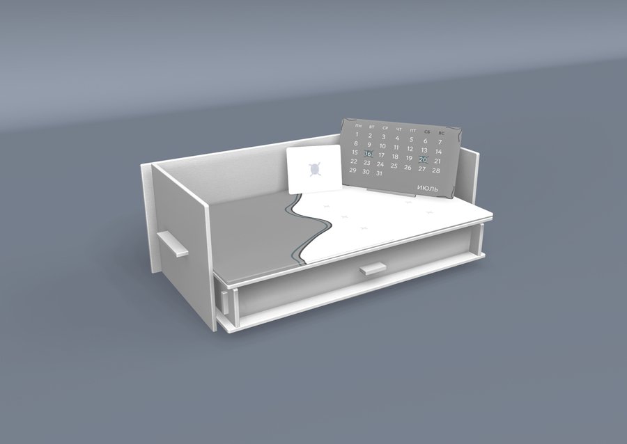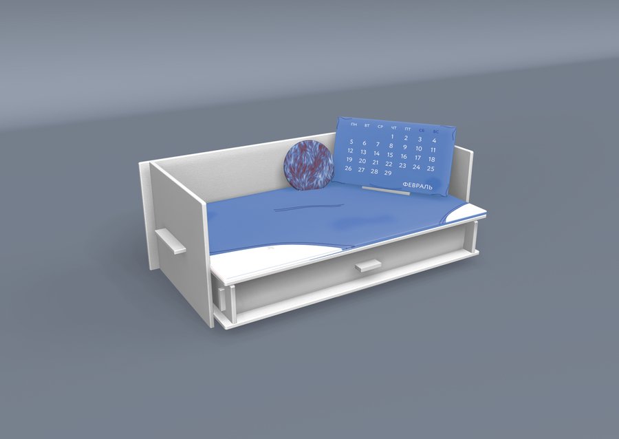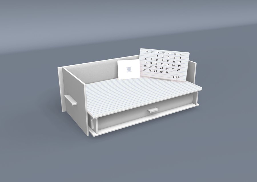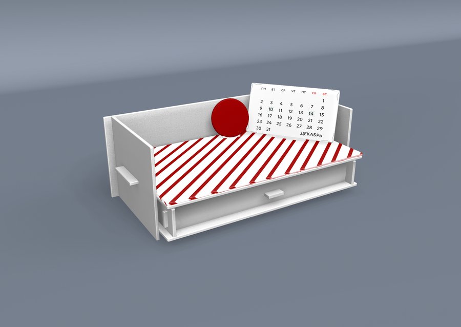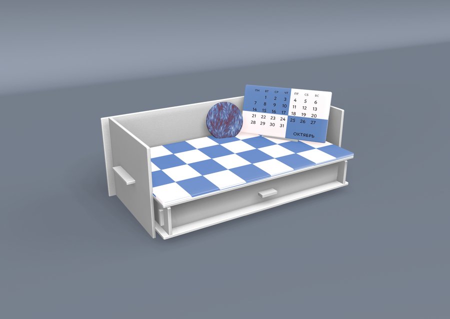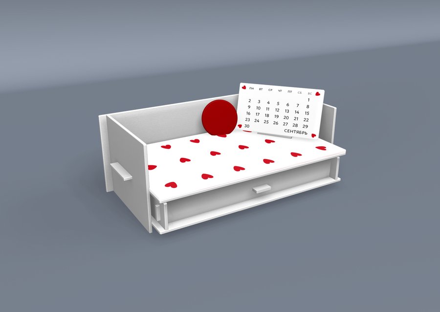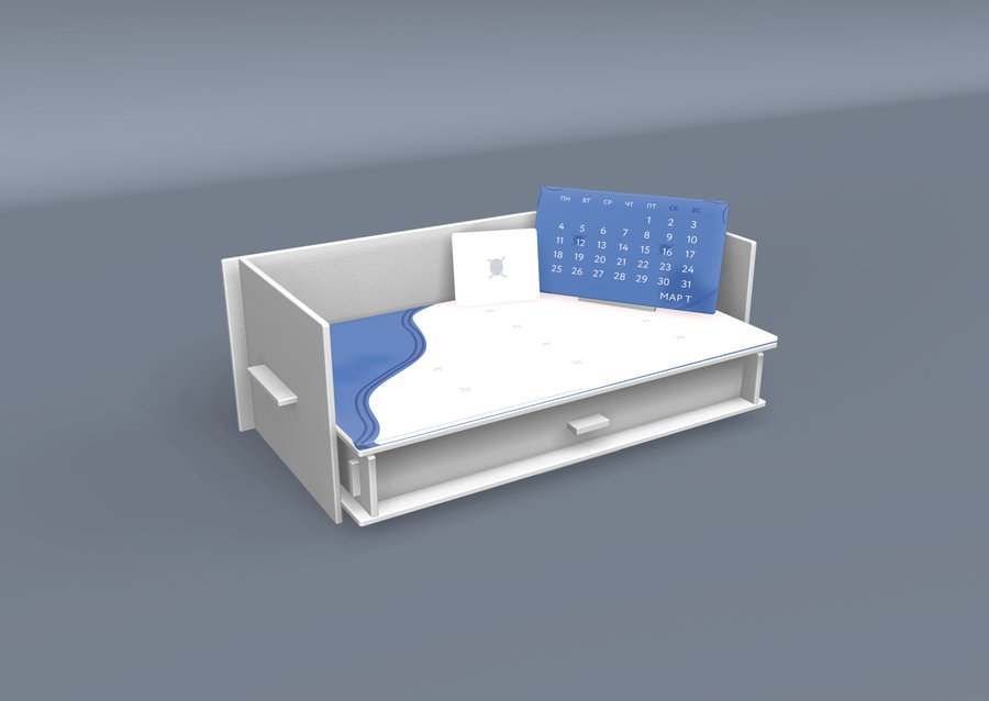 Тиражный календарь на 2024 год в виде кровати-конструктора.