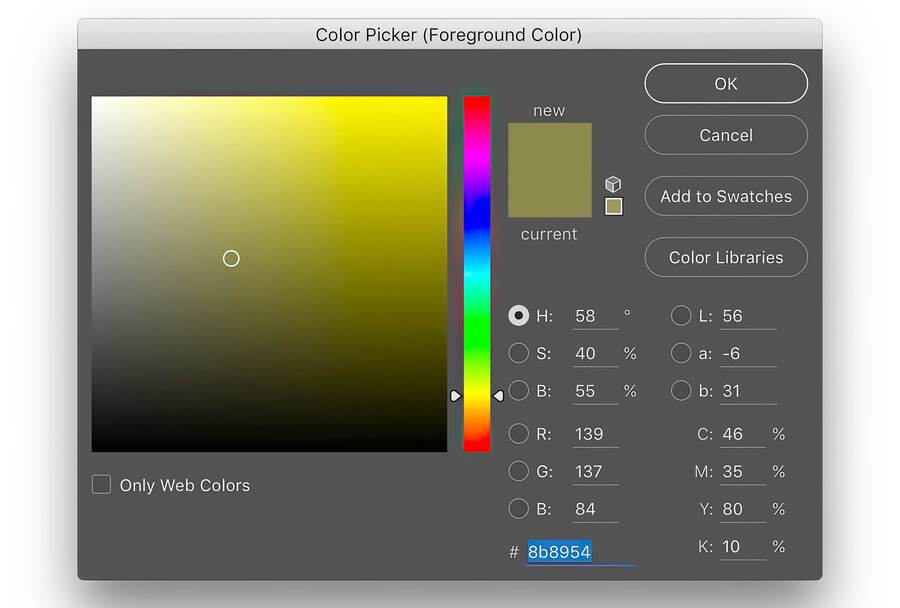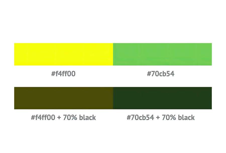 При добавлении чёрного жёлтый превращается в грязный, болотно-зелёный.