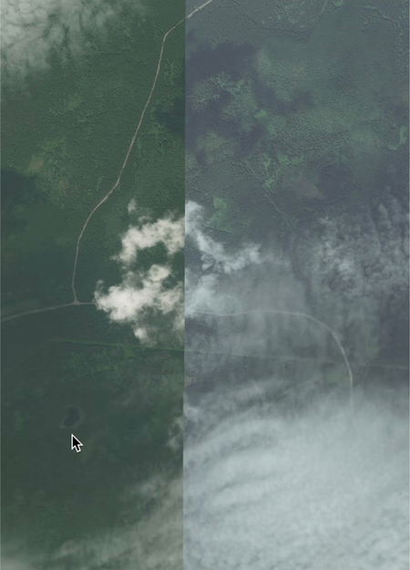 Каждая работа серии — селфи художницы в ландшафте спутниковой карты. Курсор — не репрезентация художницы, он равнозначен субъекту селфи. Он и есть «я», тот, кто находится «в» ландшафте. Курсор — это единственная возможная «самость», которая гуляет «там».