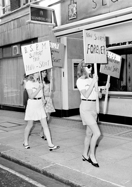 Именно мини-юбка стала главным символом свингующих 60-х. Изобретелями этого предмета гардероба объявили себя сразу три дизайнера: Мэри Куант, Джон Бейтс и Андре Курреж.