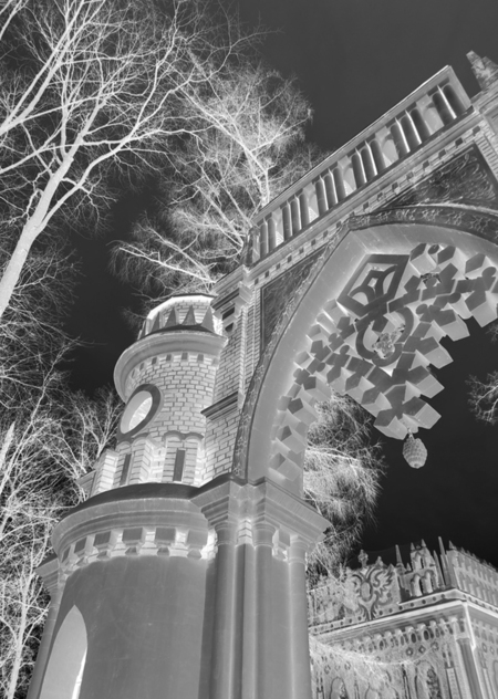 Все фотографии в книге инвертированы, делая Царицыно неузнаваемым и потусторонним