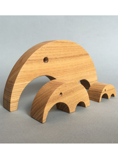 Игрушка СЛОНЫ выполнена из массива дуба и покрыта маслом. Может использоваться для ролевых игр, в качестве балансира или пазла.
