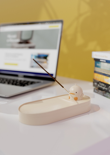 Обычно утёнок — это резиновая игрушка для ванной без функции на рабочем столе. На основе этого наблюдения появилась идея: наделить игрушку функцией, сделав ее подставкой для благовоний, которые обычно используют, чтобы настроиться на выполнение определенного действия, отвлечься от раздражителей.