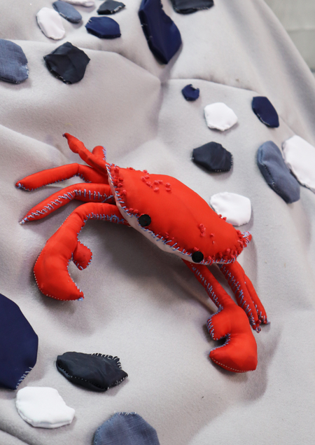 Текстильная инсталляция изображает стремление человека привнести частичку любимой стихии в городскую жизнь.