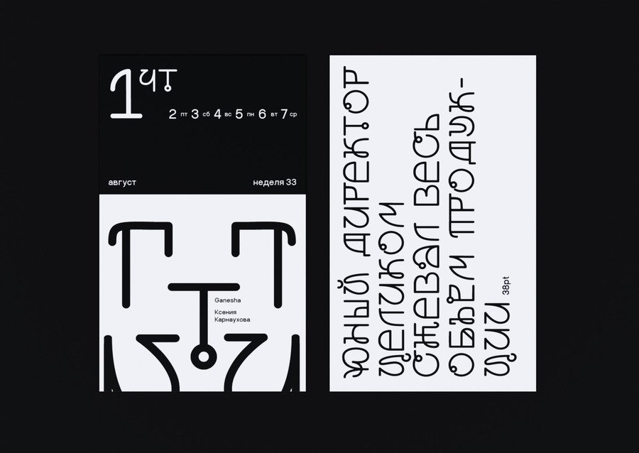 Выбор толщины начертания и общая цветность композиции зависят от длины светового дня в неделе.