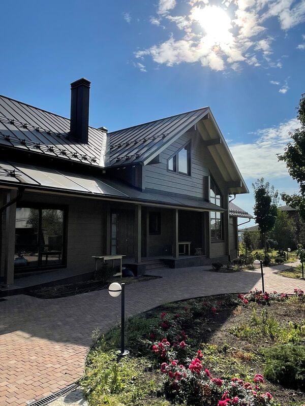 Частный дом в поселке Новомаслово проектировался и был построен для семьи из трёх человек. Из особенностей в доме два кабинета, музыкальный салон и сауна.