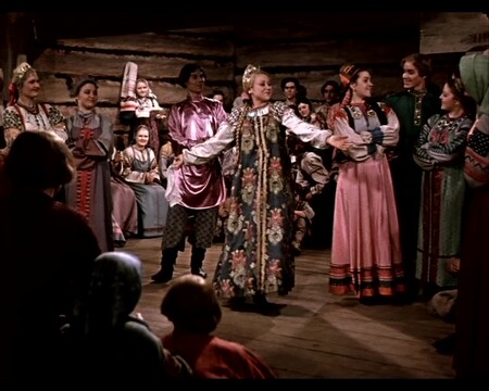 Кисти и помпоны есть на девушках в к/ф «Руслан и Людмила», на главном герое к/ф «Алые паруса», а обувь с большим количеством завязок основан на устройстве крестьянской обуви — лаптях.