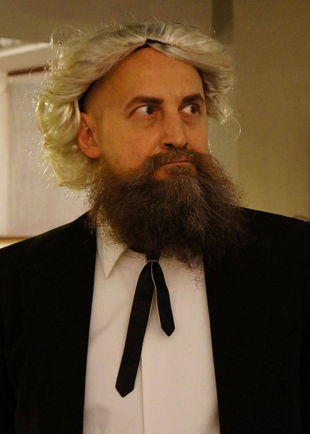 To take part in the show Greta invited well-known russian artist Herman Vinogradov, who played the role of the spirit of Marx and made a performance — according to a pre-agreed scenario but for sure with improvisation. Performance made at the opening was documented, and this video immediately was included in the exhibition.