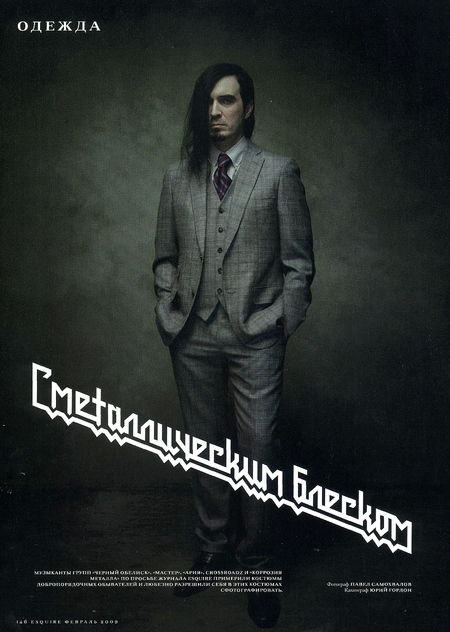 Музыканты групп «Черный обелиск», «Мастер», «Ария», CROSSROADZ и «Коррозия металла» по просьбе журнала Esquire примерили костюмы добропорядочных обывателей и любезно разрешили себя в этих костюмах сфотографировать. | 2009 | февраль