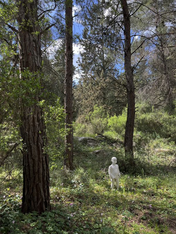 Опираясь на образ первозданной природы, как внутреннего мира человека, я размышляя над тем что может находиться в таком пространстве. И мне в голову пришел образ потерянного ребенка, который всегда знал куда идти, но взрослея, начал терять свой путь. С возрастом ребенок начинает отражать людей вокруг себя, чтобы научиться социализироваться, и, со временем, сталкивается с новыми воздействиями, не всегда имея навык им противостоять. Впитывая модели общения вокруг себя, человек теряется в правильности, так как опыт взаимодействия навязывает действия без понимания логики и без рефлексии. Ребенок, помещенный в пространство внутреннего мира (бесконечной природы), не имеет предела своих возможностей и не имеет ограничения. Ограничения появляются, когда ребенок помещен в общество. Таким образом в контексте паблик-арта я создала скульптуру ребенка, отражающего ступор, страх и потерянность в своем лице и поместила его в природу.