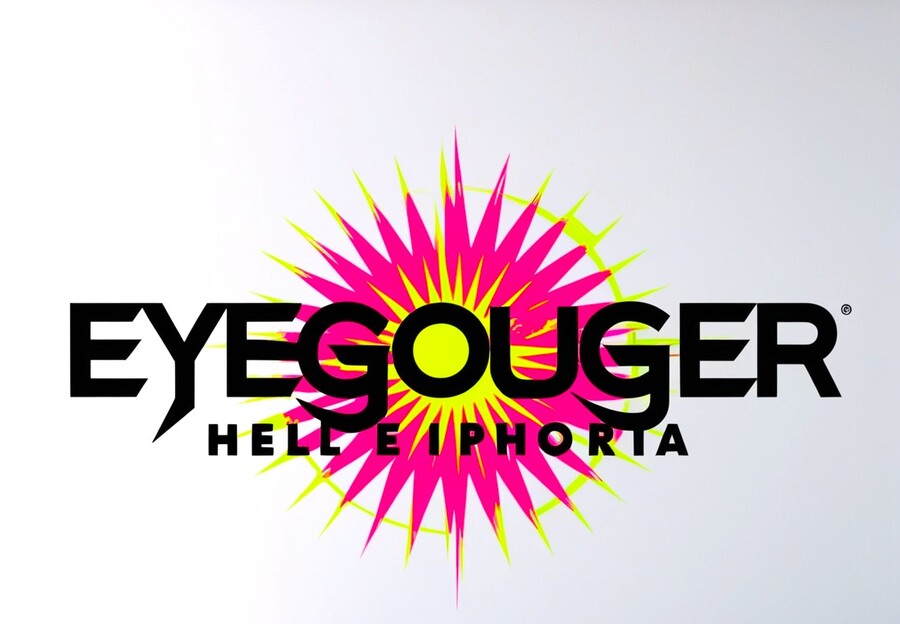 Варианты логотипа бренда «Вырвиглаз» с включенным туда цветом, лого и типографикой Первичная задача: отцентровать О в слове «Eyegouger» так, чтобы была ассоциация с глазом и взрывом цвета