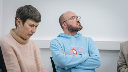 Модерировал дискуссию Иван И. Твердовский — творческий руководитель профиля «Экранные искусства» в Школе дизайна НИУ ВШЭ. Кинорежиссёр, сценарист, лауреат российских и международных кинофестивалей, член Европейской киноакадемии