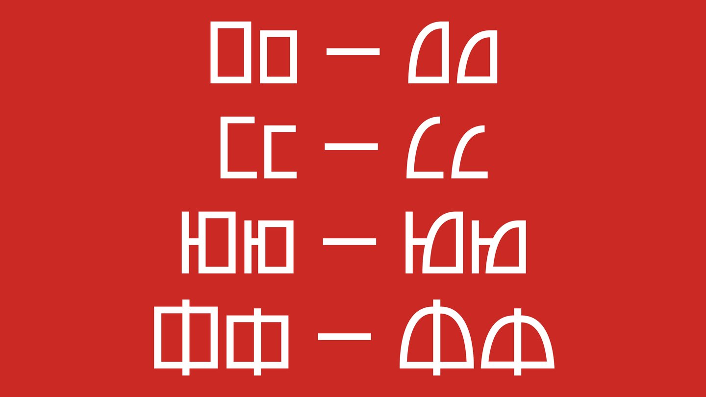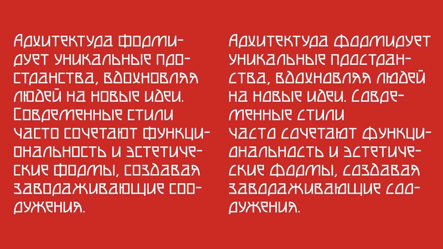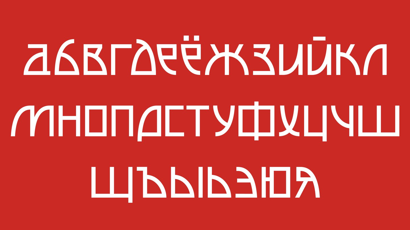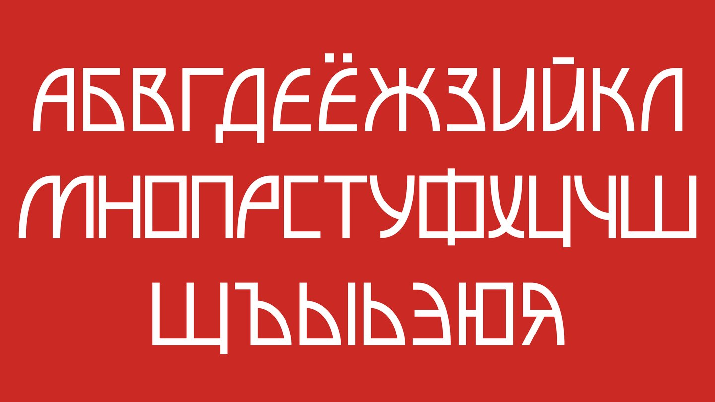 Шрифт наследует формы из «Архитектурных фантазий» Якова Чернихова