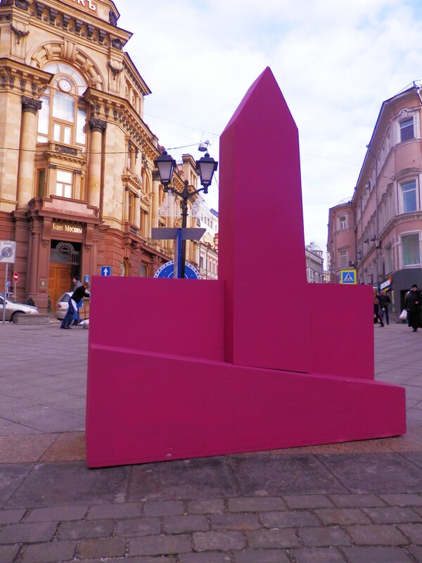 Объект создан для выставки городской скульптуры и объектов паблик-арта «Городские метаморфозы» (декабрь 2014 — январь 2015) на Кузнецком мосту в Москве. Работа ненадолго возвращает Москве фрагмент ее исторического облика, один из символов ее самобытности. Это не архитектурная модель, не бутафория, а, скорее, скульптура в память о Сухаревой башне. Попытка передать впечатление о ней, силу ее воздействия.