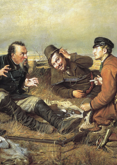 Снято ещё студентом Шабуровым на пленэре вблизи деревни Каменка под Первоуральском, где его соученики спорят о том, каким должно быть искусство.