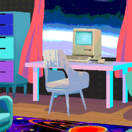 Уютный 2D симулятор обустройства личного пространства, вдохновленный компьютерными интерфейсами 90-х.