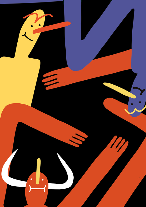 This is a series of illustrations about zodiac signs doing nothing. The characters are reading books, exercising, or just resting in tricky poses.
