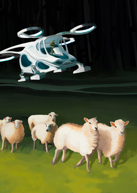 Главным персонажем истории является пастушка, переехавшая на новую планету со своим овечьим стадом. Именно она летает на овечьем аппарате, следя за овцами и отлавливая их.