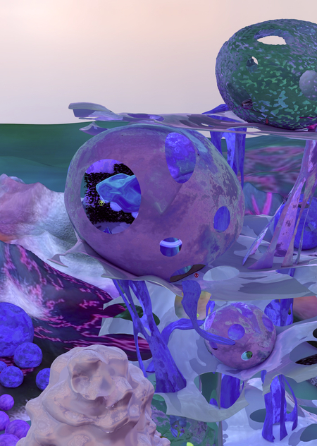 Идея пространства выставки «Биоморфное царство» родилась в ходе размышлений над тем, как будет выглядеть природа через миллионы лет.