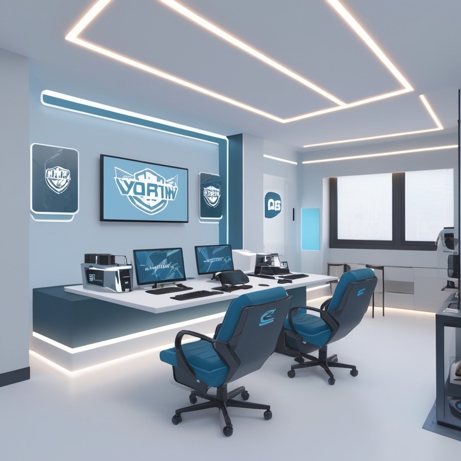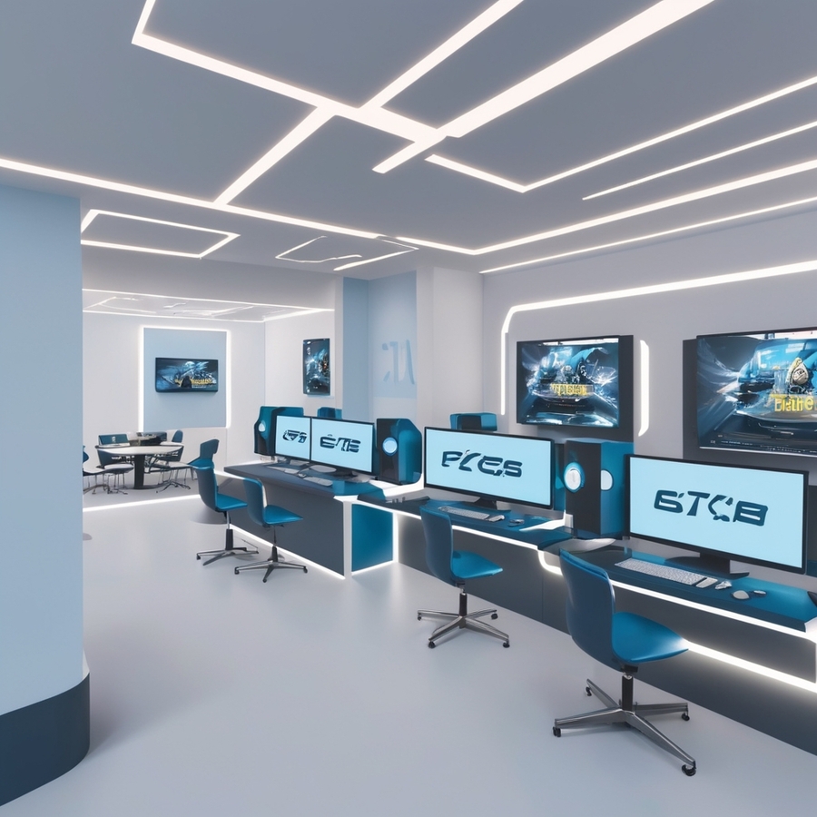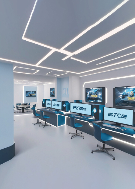 Интерьер: leonardo.ai («create the interior of the computer club combines modern design and comfort, immersing visitors in the world of digital technology. The gaming zone is decorated in dark tones with neon accents, providing ergonomic conditions for gamers, while cozy study rooms and a stylish coffee bar create an atmosphere for learning and relaxation. The decor features motivational posters, changing lighting, and a quality sound system that enhance the feelings of coziness and inspiration, making the club an ideal place for all technology and gaming enthusiasts.» (Leonardo Kino XL; Film))