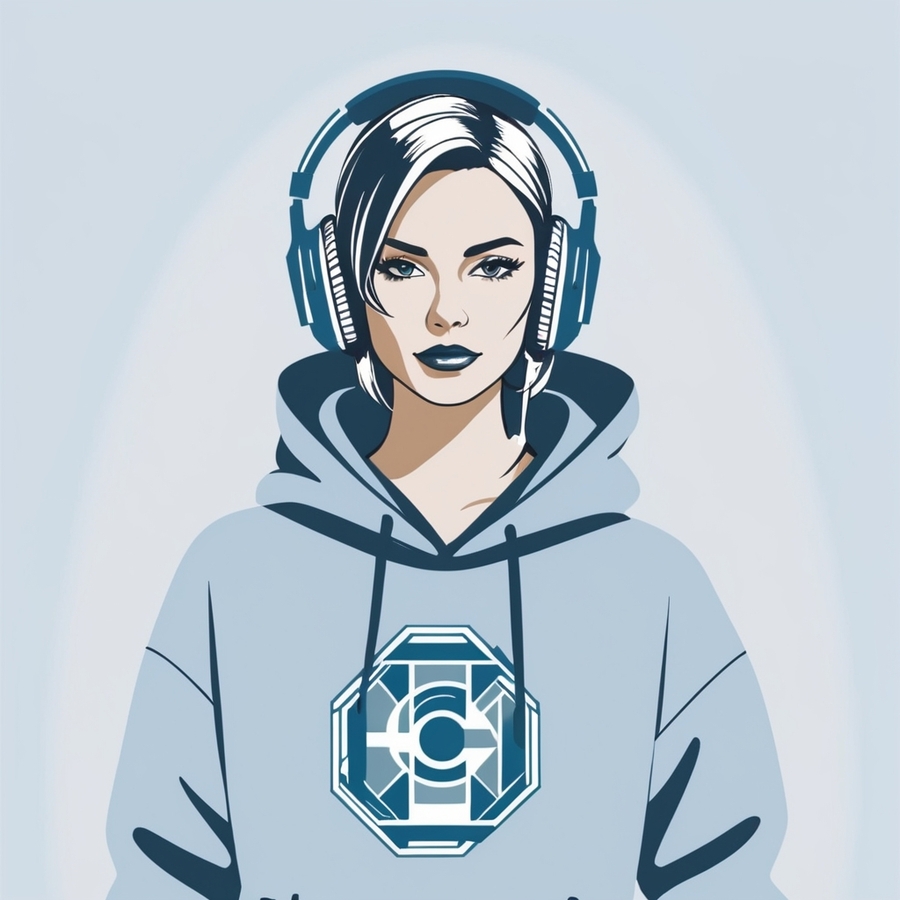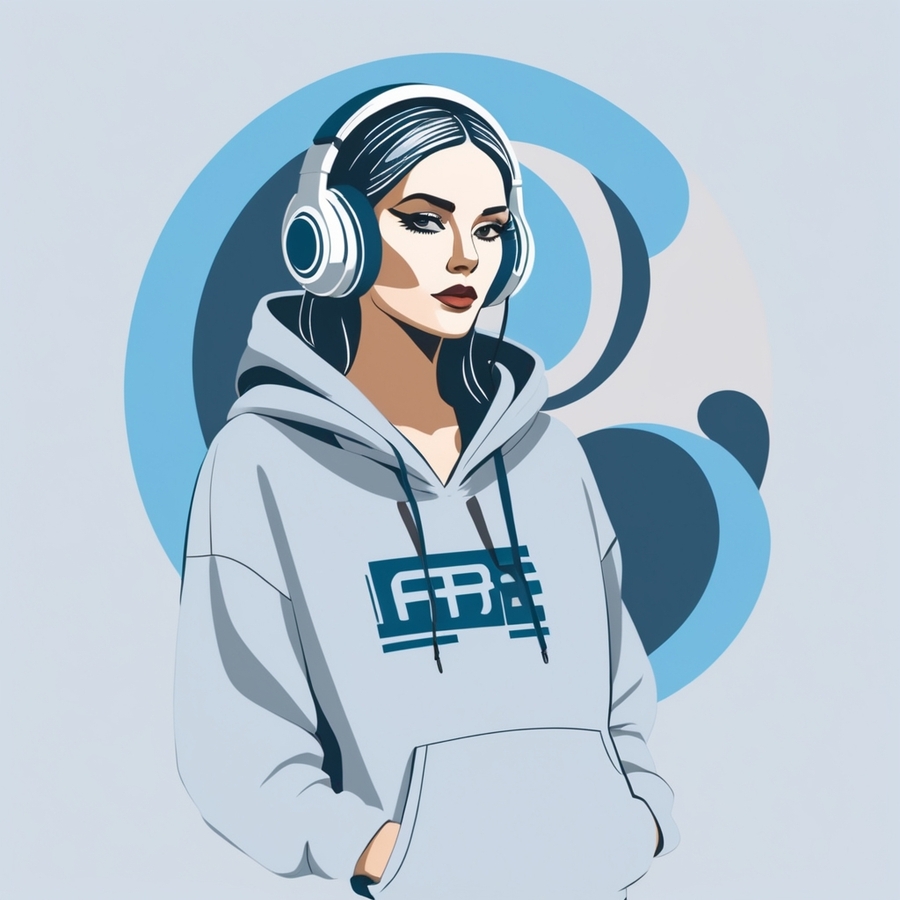 Худи 2 и 3: leonardo.ai (A fashion photograph featuring a standing fullbody model wearing headphones and a large, oversized hoodie. The hoodie is adorned with a modern art picture for the DIGITAL HAVEN computer club. The background is light. The overall atmosphere of the photo is modern and technical.) (AlbedoBase XL; Graphic Design 2D))